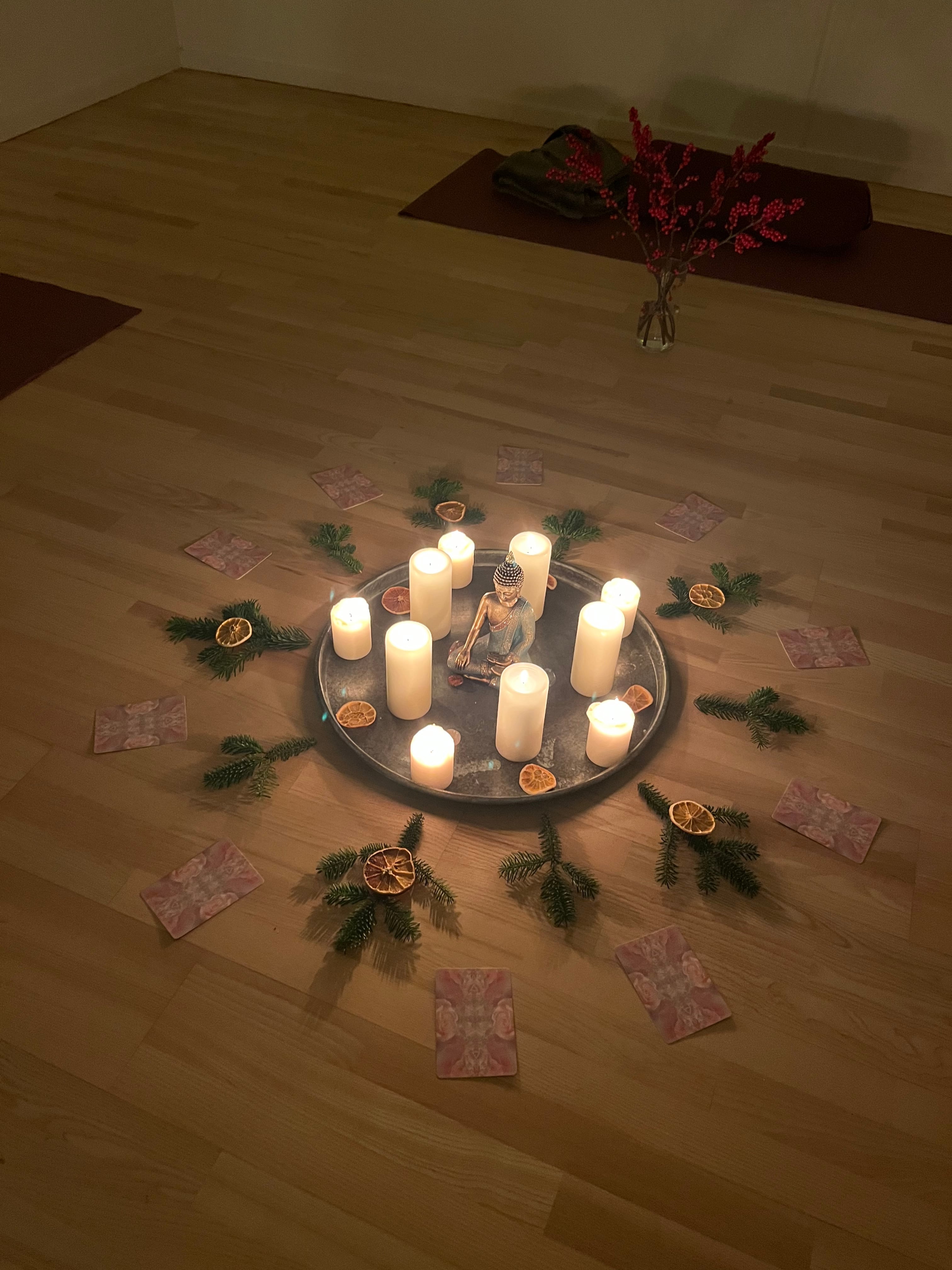 Cacaoen åbner blidt hjertet og jeg guider jer ind i et nærværende rum, hvor der skabes plads til stilhed, indsigt og forløsning.